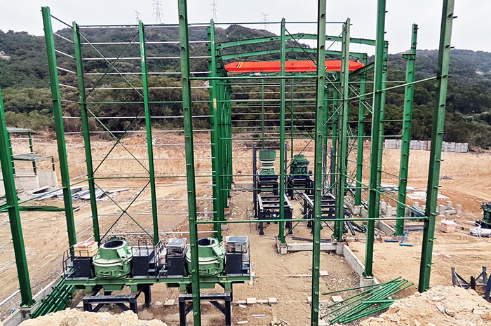 天博圆锥破和欧美某品牌圆锥破并驾齐驱,在韩国混凝土企业的骨料生产线共同担任二破重任。【详细】